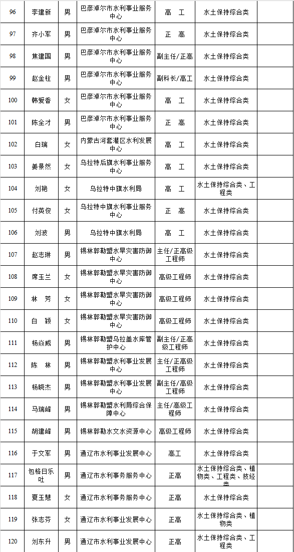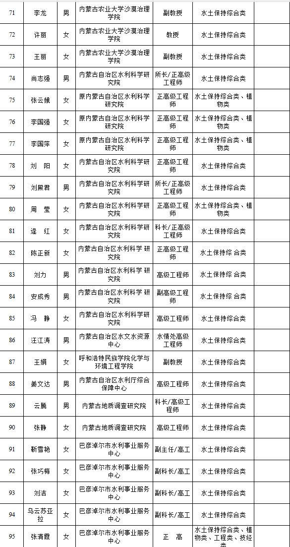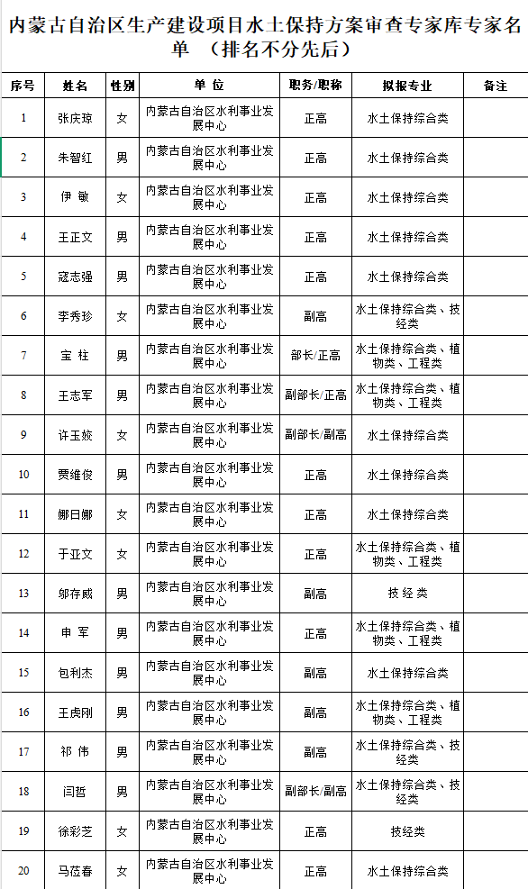 附件:内蒙古自治区生产建设项目水土保持方案审查专家库专家名单.xlsx