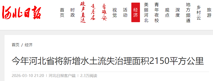 今年河北省将新增水土流失治理面积2150平方公里