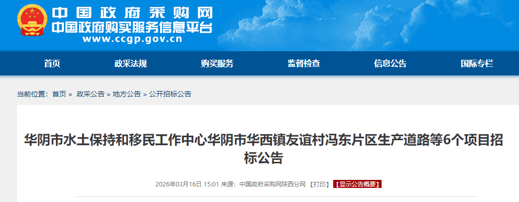 华阴市华西镇友谊村冯东片区生产道路等6个项目的潜在投标人应在陕西省政府采购综合管理平台项目电子化交易系统(以下简称“项目电子化交易系统”)获取招标文件,并于 2026年04月08日 09时00分 (北京时间)前递交投标文件。