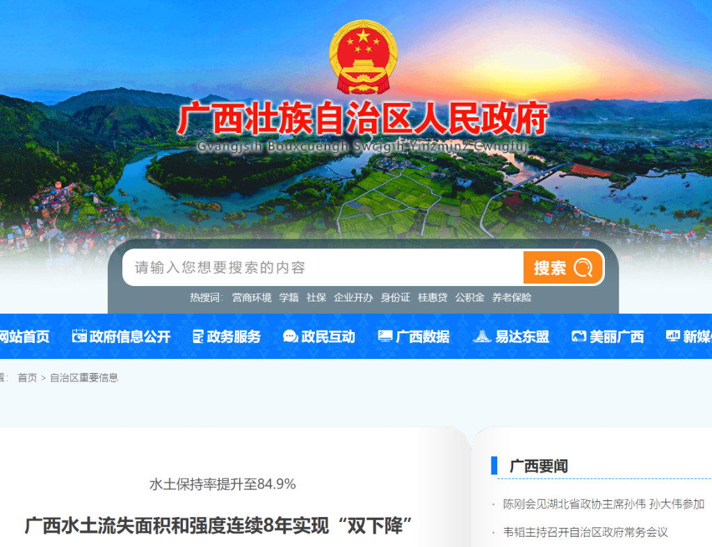 3月25日,记者从自治区政府新闻办举行的新闻发布会上获悉,“十四五”以来,广西新增水土流失治理面积9649.39平方公里,水土保持率提升至84.90%,水土流失面积和强度连续8年“双下降”,为建设美丽广西、筑牢我国南方生态安全屏障提供了有力支撑。