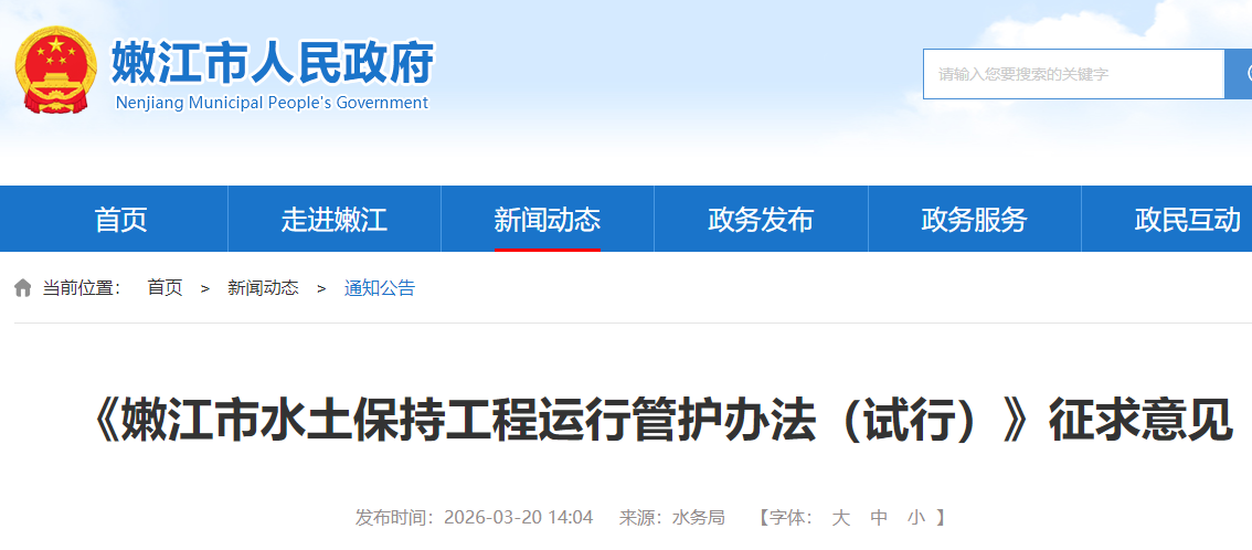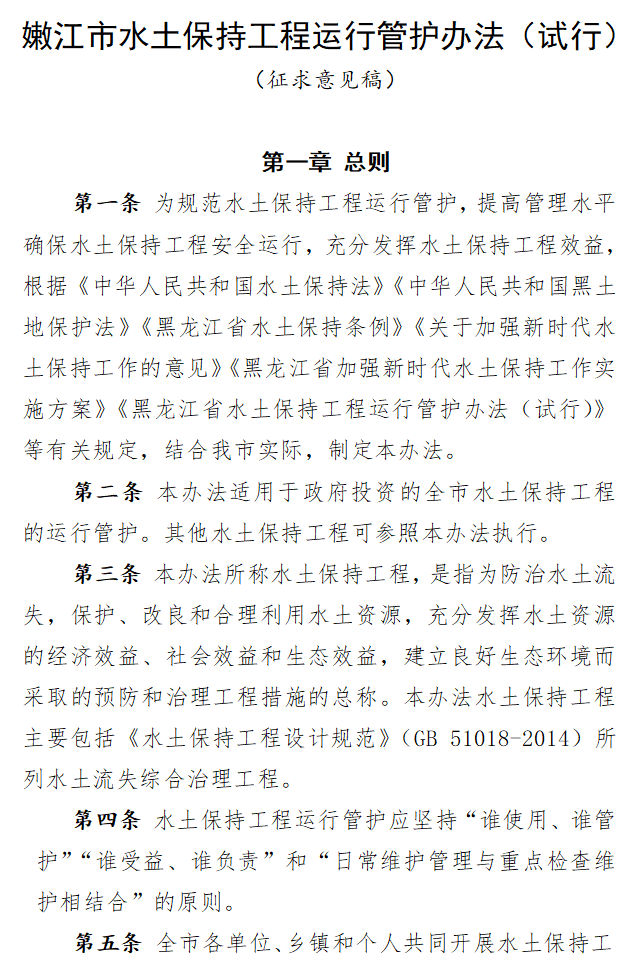 《嫩江市水土保持工程运行管护办法(试行)》(征求意见稿)