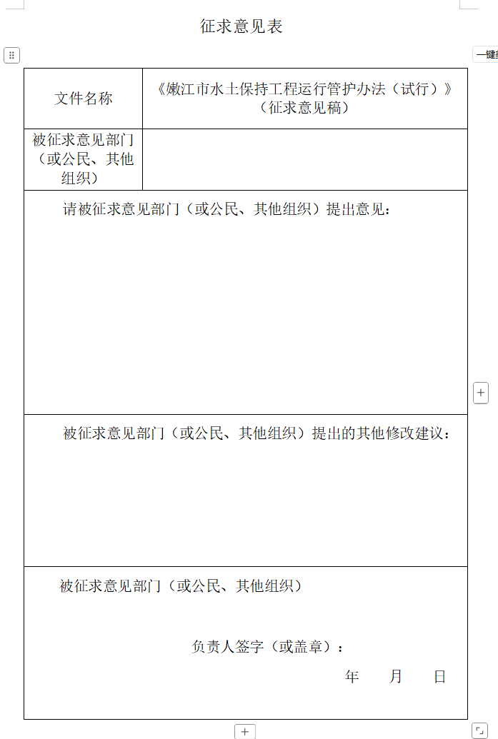 现征求各有关机关、公民、法人和其他组织的意见及建议,请于3月31日下班前反馈市水务局,逾期未反馈视为无意见。