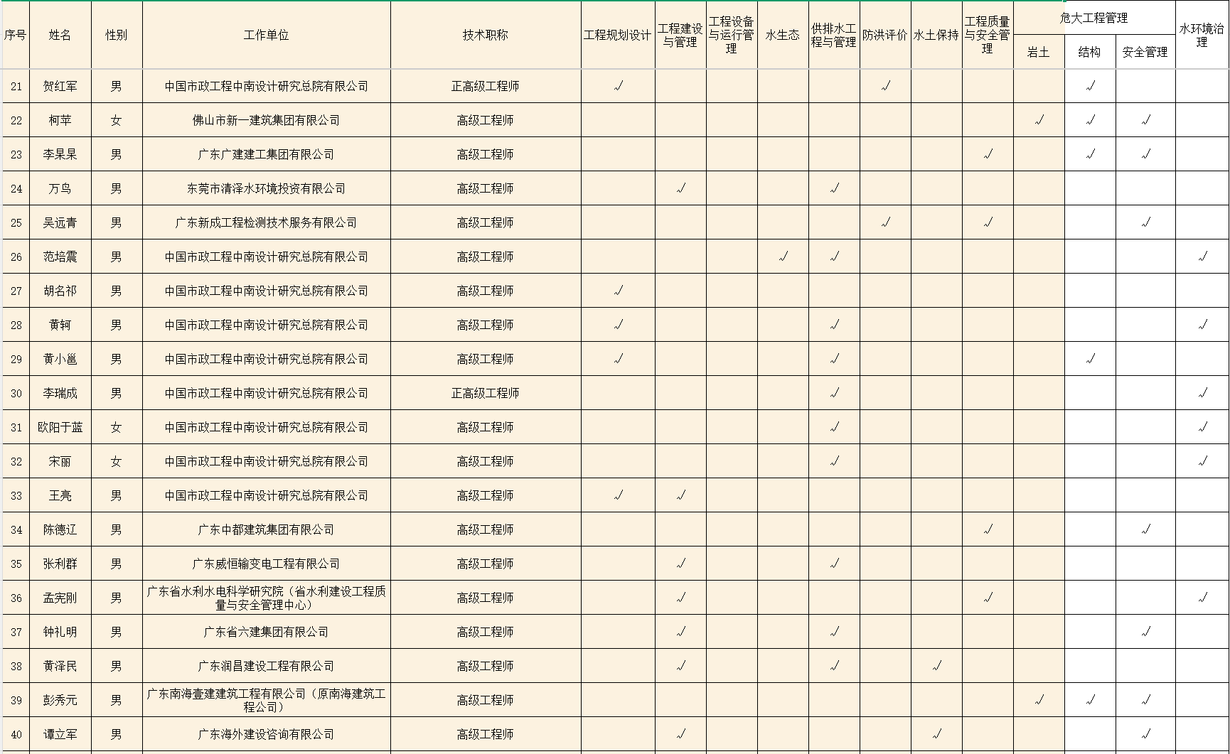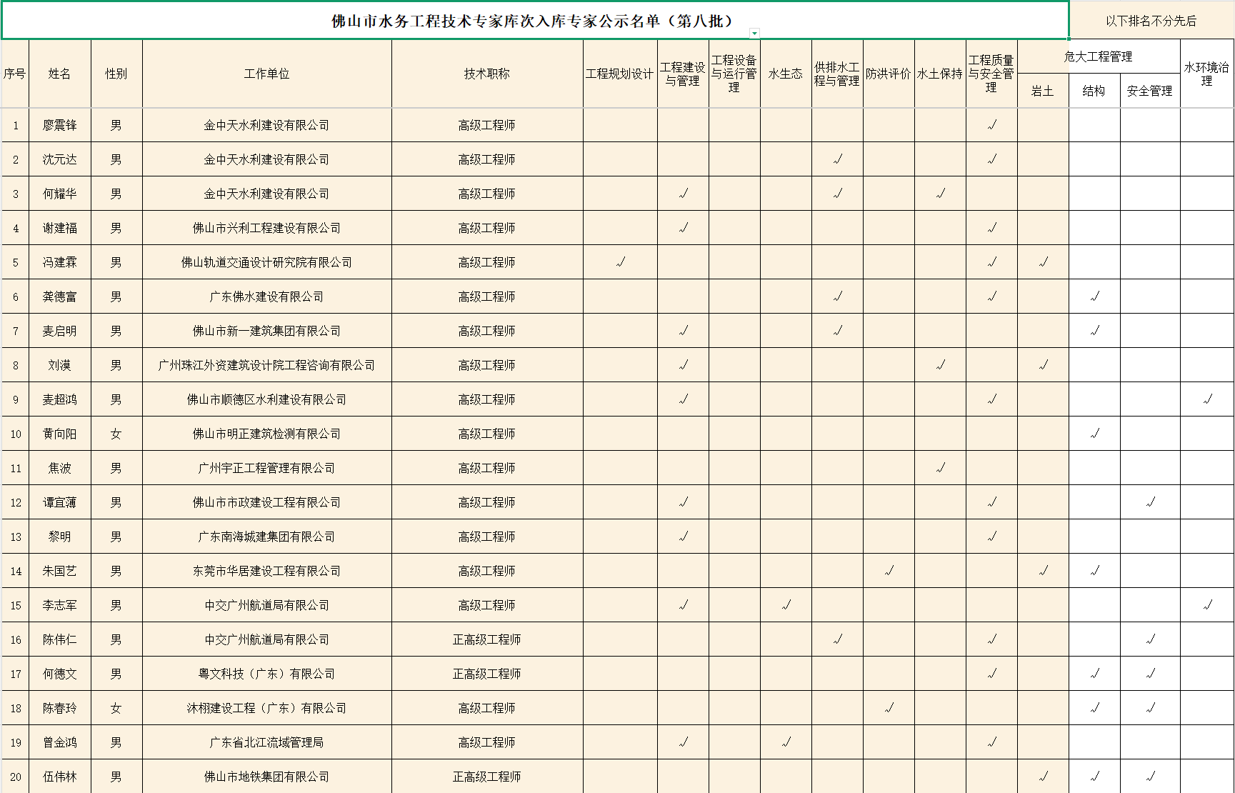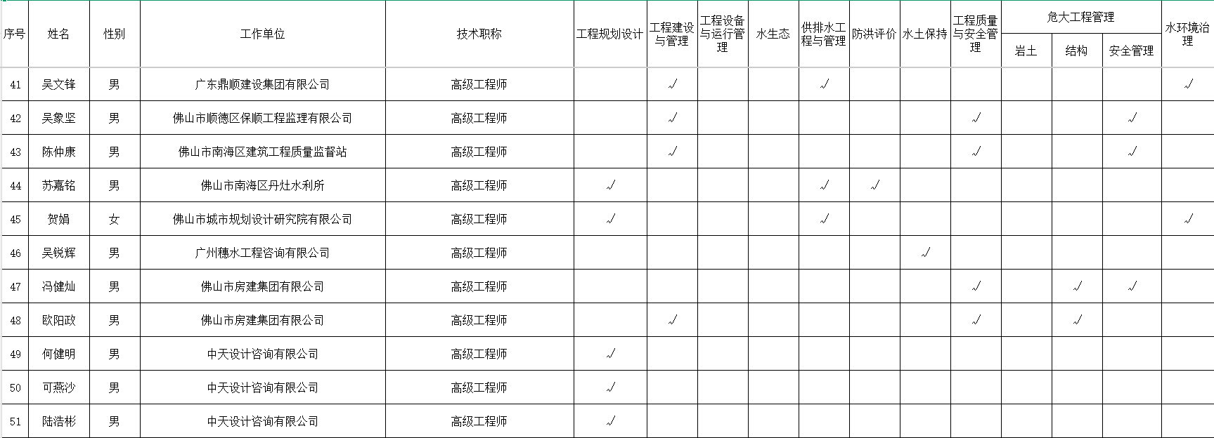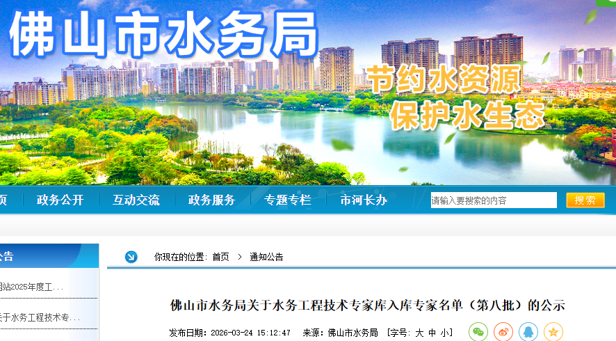 附件:佛山市水务工程技术专家库入库专家公示名单(第八批)