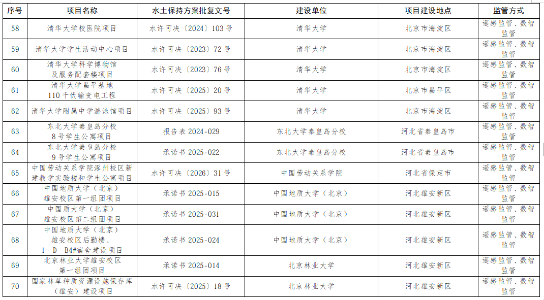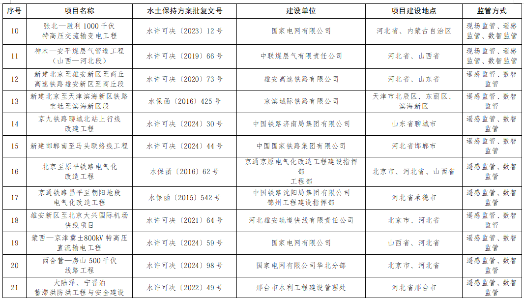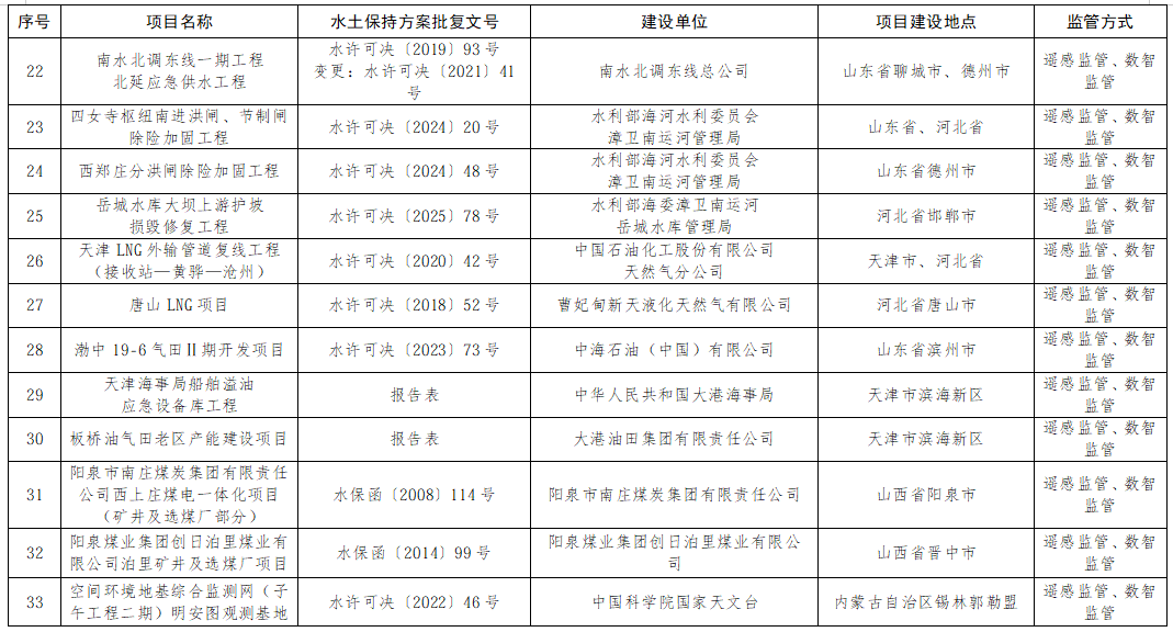 海河流域内水利部批复水土保持方案中已批待建、在建、完建未验收、已验收待核查的生产建设项目。项目名单见附件。