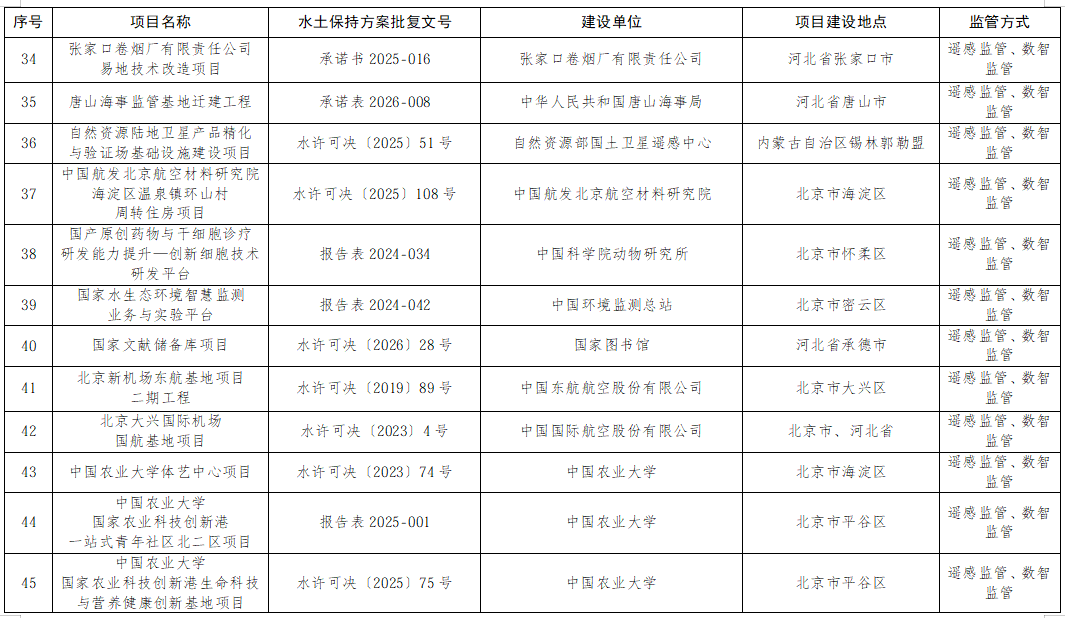 2026年海河流域部批生产建设项目水土保持事中事后监管计划