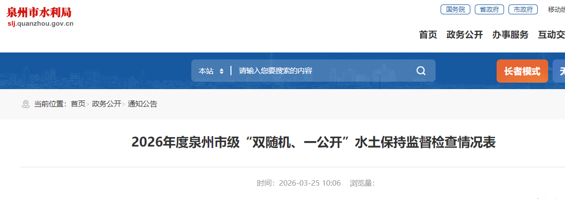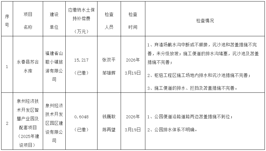 2026年度泉州市级“双随机、一公开”水土保持监督检查情况表
