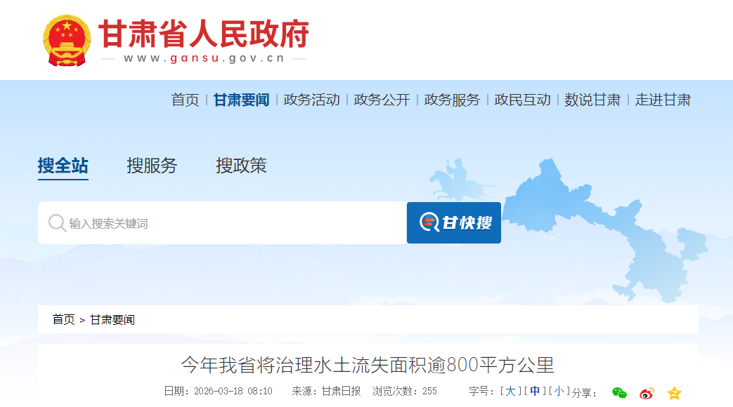 近日,省水利厅部署今年水土保持重点工作,提出全年计划完成水土流失治理面积800平方公里以上,同步推进多项配套举措,打好“十五五”水土保持工作第一仗,持续推动陇原大地生态环境持续向好。