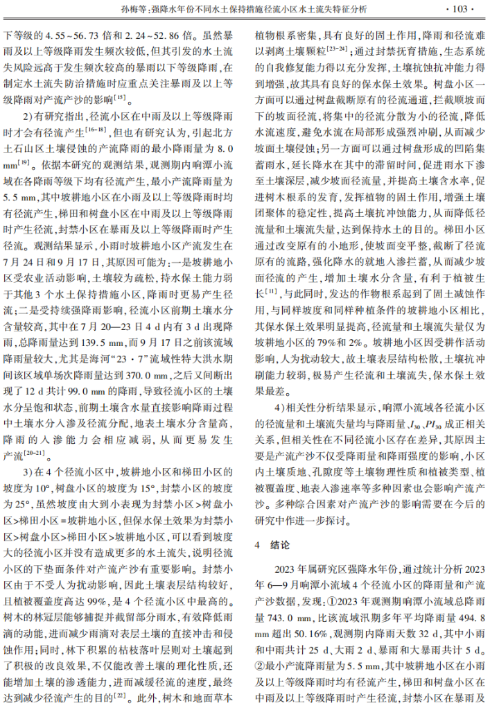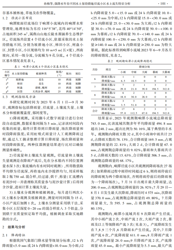 强降水年份不同水土保持措施径流小区水土流失特征分析——以北京市响潭小流域为例