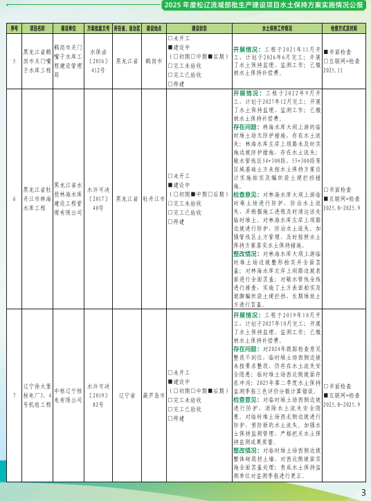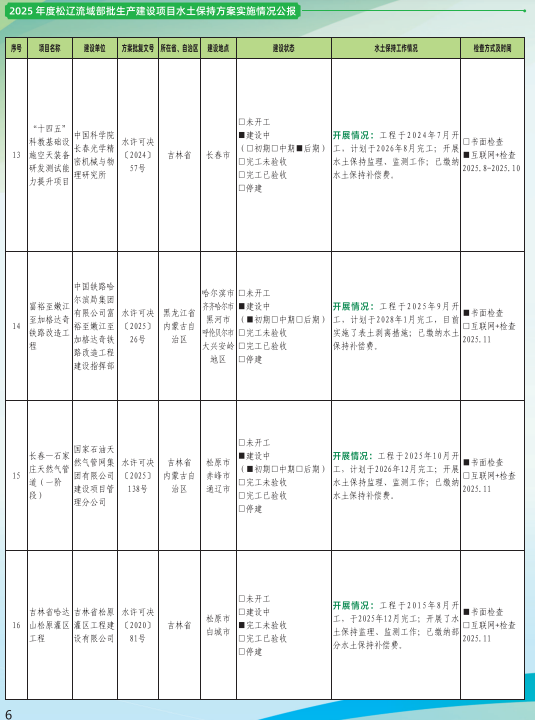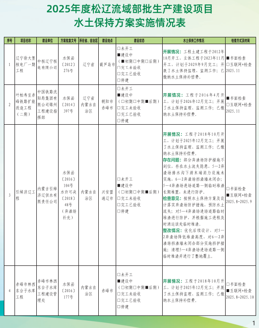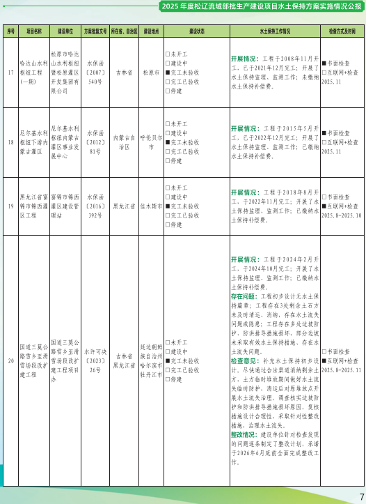 2025年度松辽流域部批生产建设项目水土保持方案实施情况公报