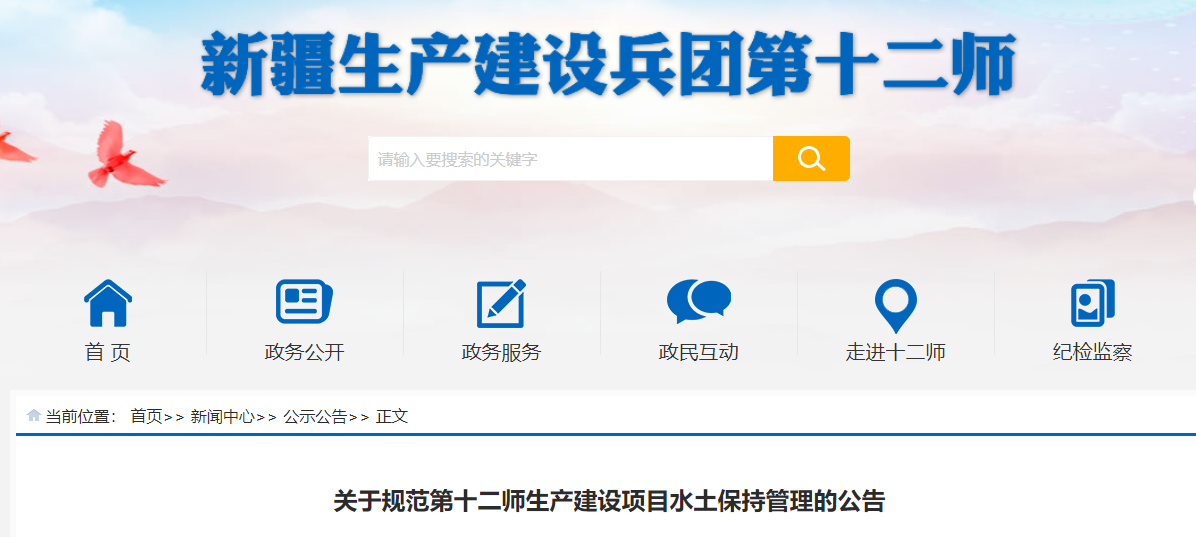 生产建设单位是水土流失防治第一责任主体,应全面履行法定义务,主动接受监督检查。欢迎社会各界关心、关注第十二师水土保持事业,积极提供违法违规线索。