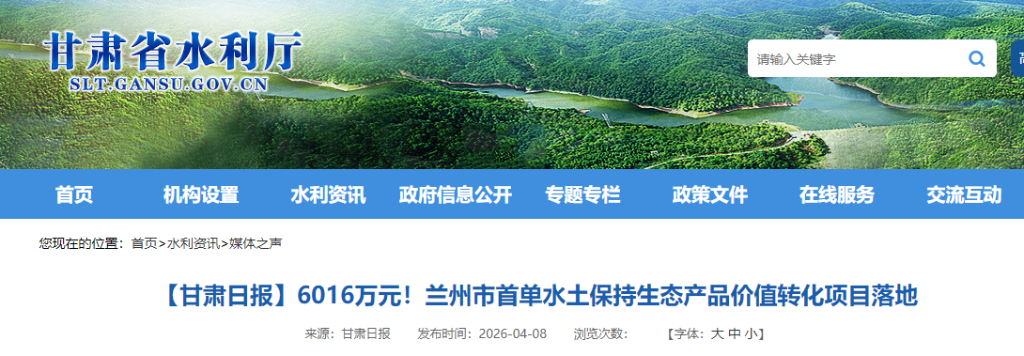 新甘肃客户端永登4月8日讯(新甘肃·甘肃日报记者 张燕茹)今天上午,兰州市永登县河桥镇药水沟区域水土保持生态产品价值转化协议正式签约,6016万元的生态产品转化成功落地,标志着兰州市水土保持生态价值市场化转化实现零的突破。