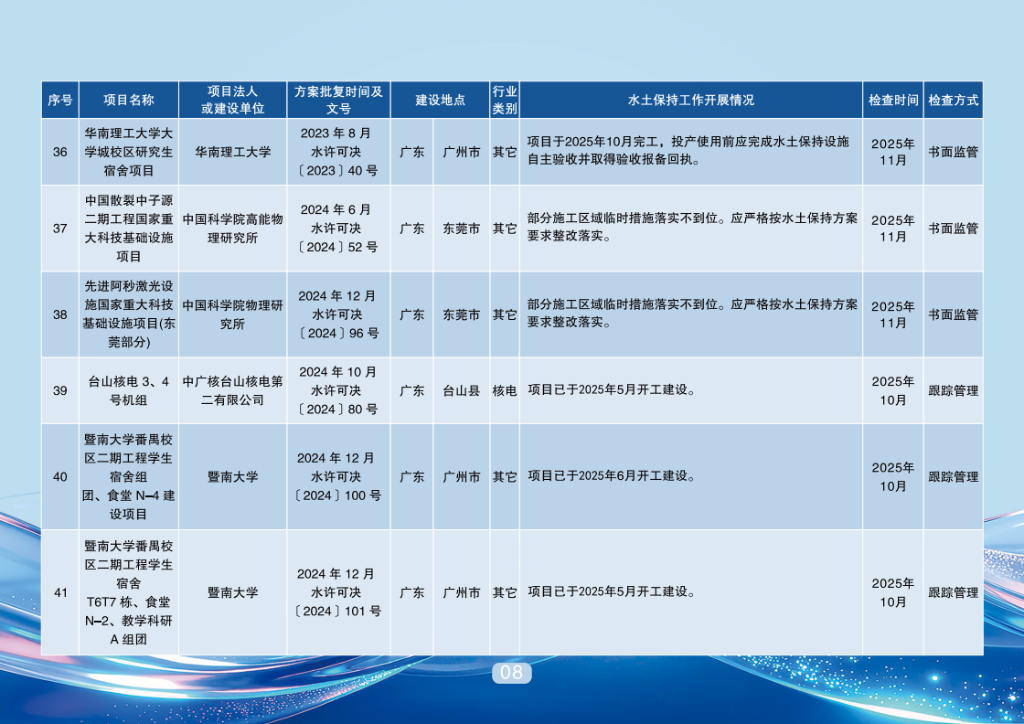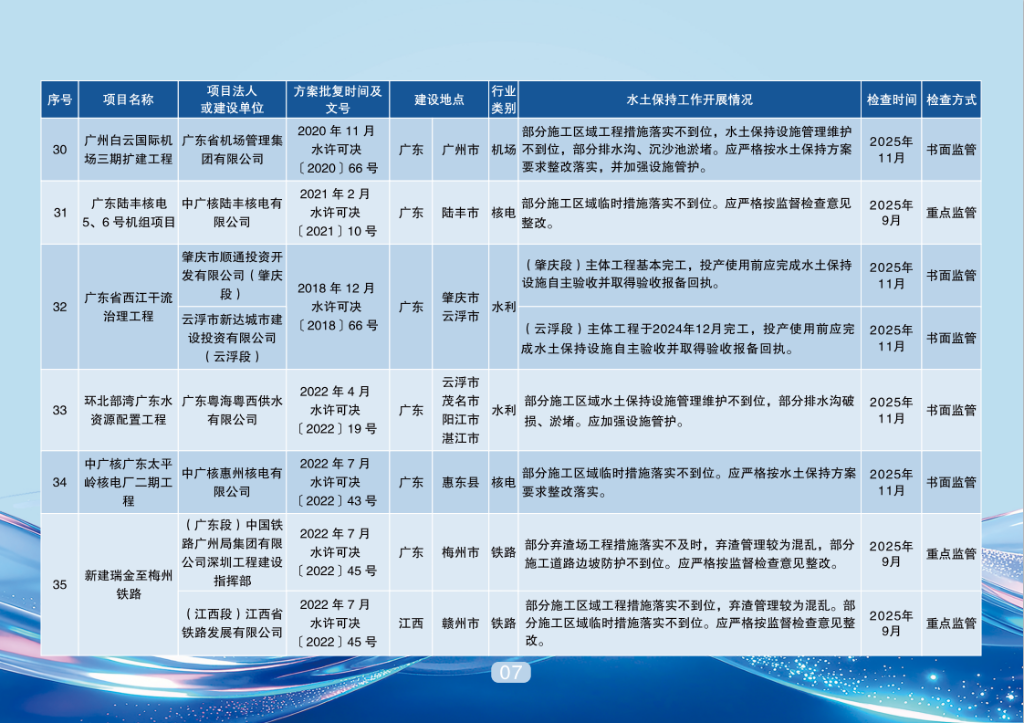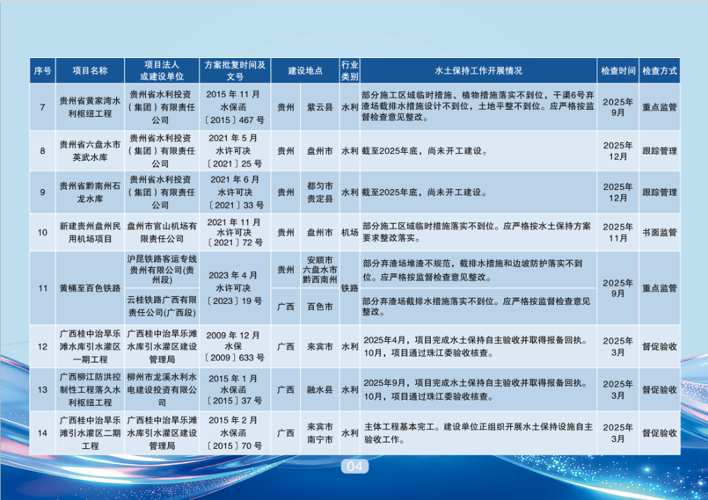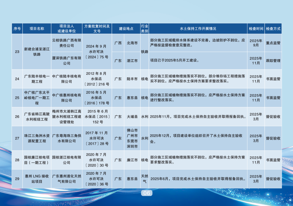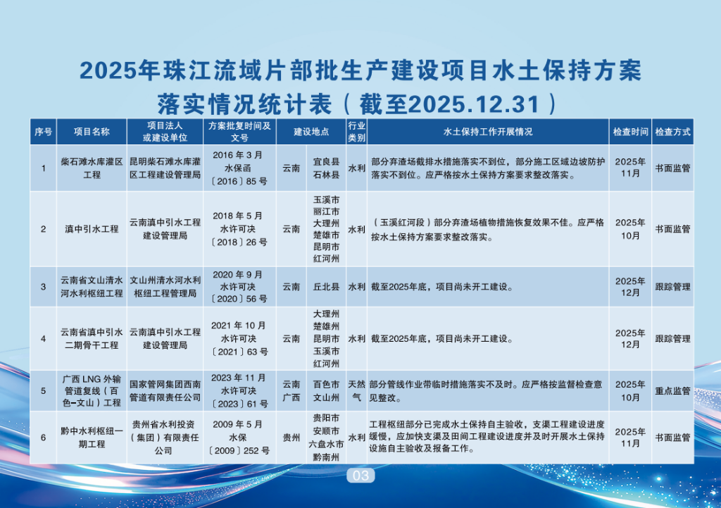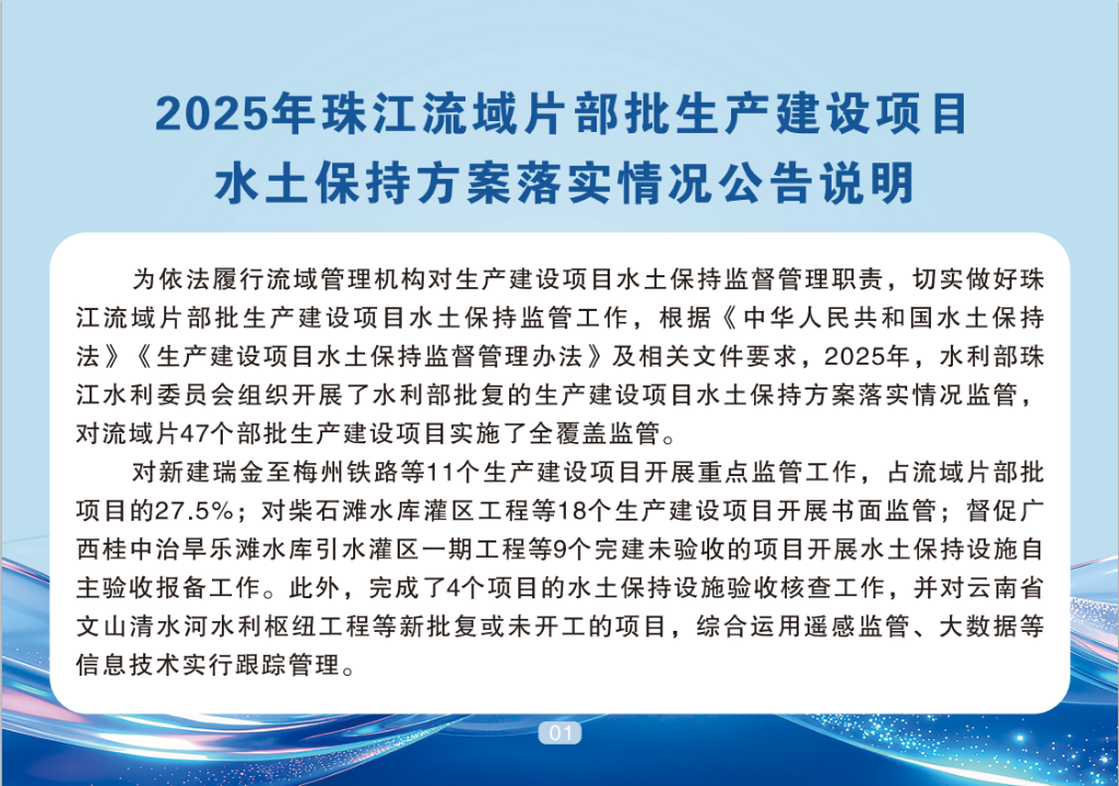 2025年珠江流域片部批生产建设项目水土保持方案落实情况公告
