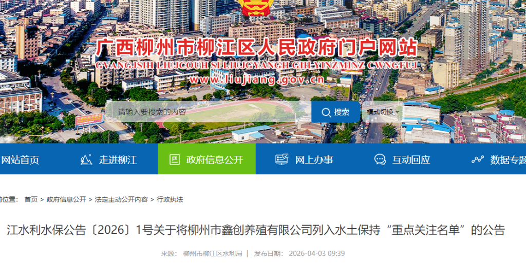 经查,你公司实施建设的柳州市鑫创养殖项目存在未完成水土保持方案报批手续,先行开工建设的行为,违反了《中华人民共和国水土保持法》第二十六条的规定。依据《水利部办公厅关于实施生产建设项目水土保持信用监管“两单”制度的通知》(办水保〔2020〕157号)相关规定,现决定将你公司列入“重点关注名单”,并通过全国水利建设市场监管服务平台等向社会公开,公开期限为1年。