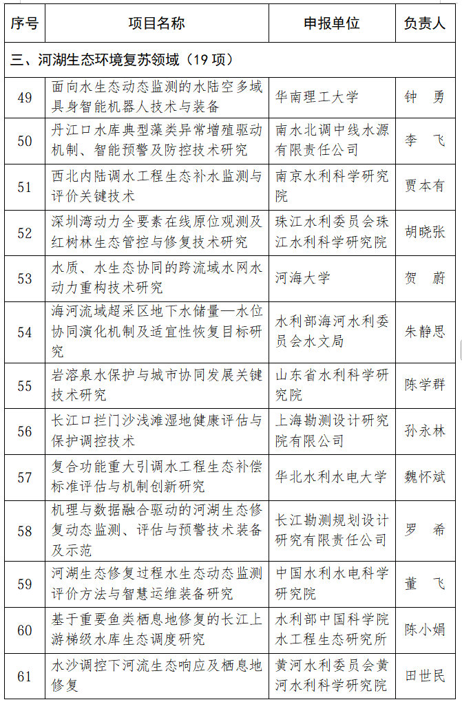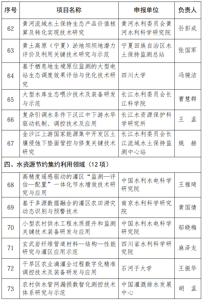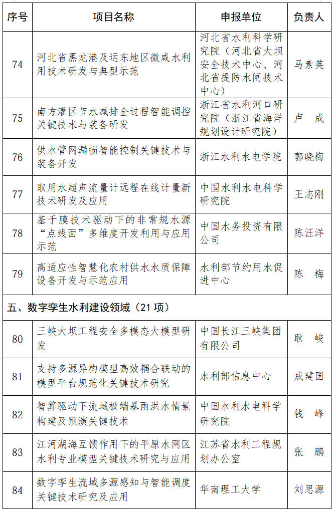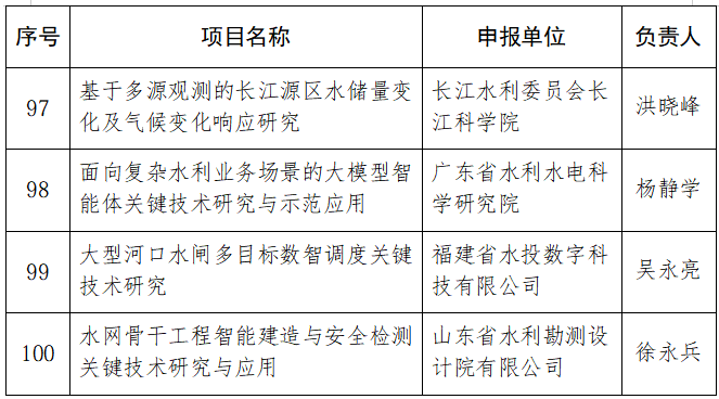 为深入实施创新驱动发展战略,全面贯彻习近平总书记关于治水和关于科技创新重要论述精神,强化水利科技创新体系建设,因地制宜发展水利新质生产力,提升推动水利高质量发展、保障我国水安全能力,根据《水利部重大科技项目管理办法》(水国科〔2022〕122号)等有关规章制度要求,水利部组织开展了2025年水利部重大科技项目计划立项工作,经过评审公示,形成2025年水利部重大科技项目清单,现予以公布。