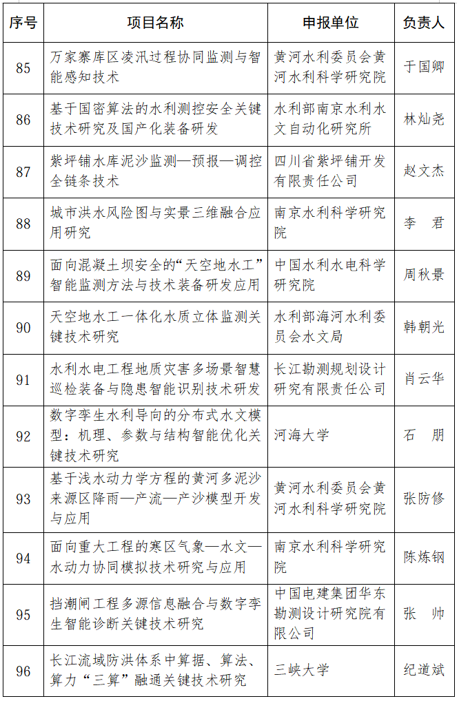 附件:2025年水利部重大科技项目清单