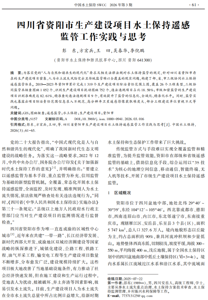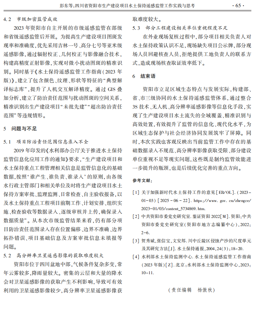 四川省资阳市生产建设项目水土保持遥感监管工作实践与思考