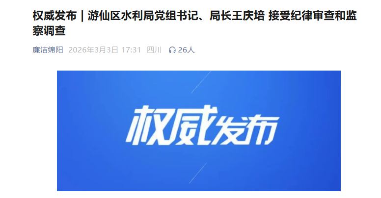 游仙区水利局党组书记、局长王庆培 接受纪律审查和监察调查