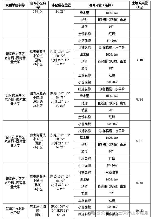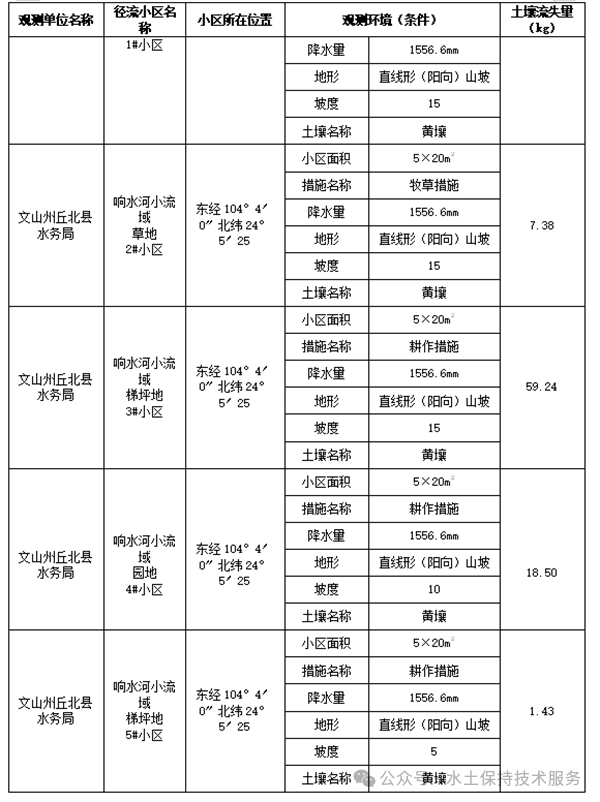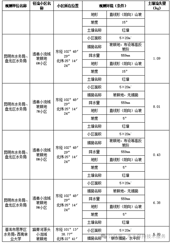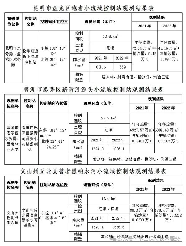 (1)小流域控制站观测成果