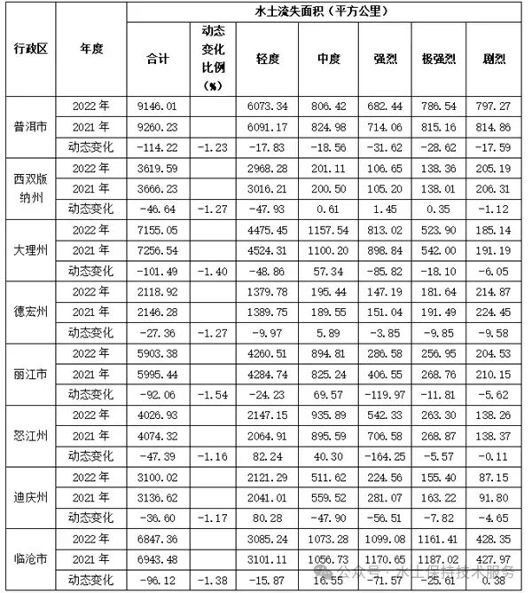 云南省2021年与2022年水土流失面积变化图