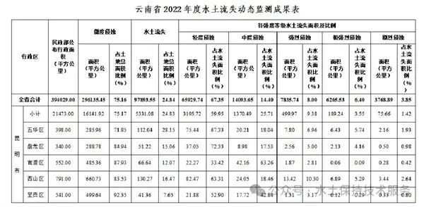 2022年云南省水土流失面积、强度总体呈现下降趋势。