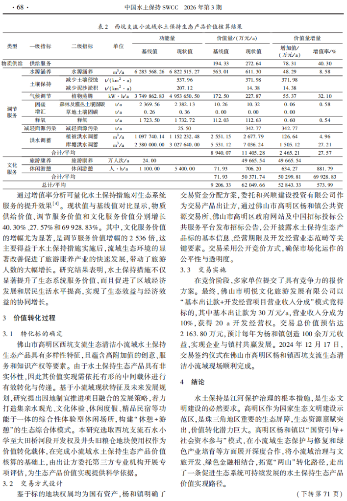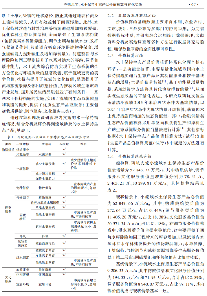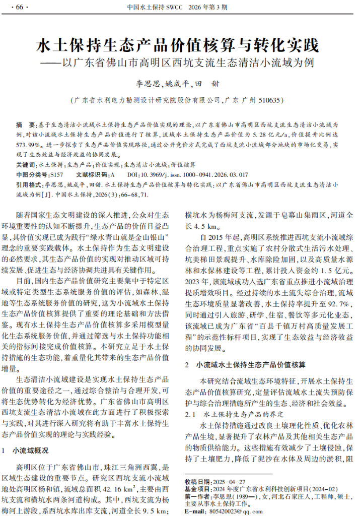 水土保持生态产品价值核算与转化实践——以广东省佛山市高明区西坑支流生态清洁小流域为例
