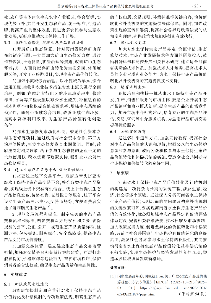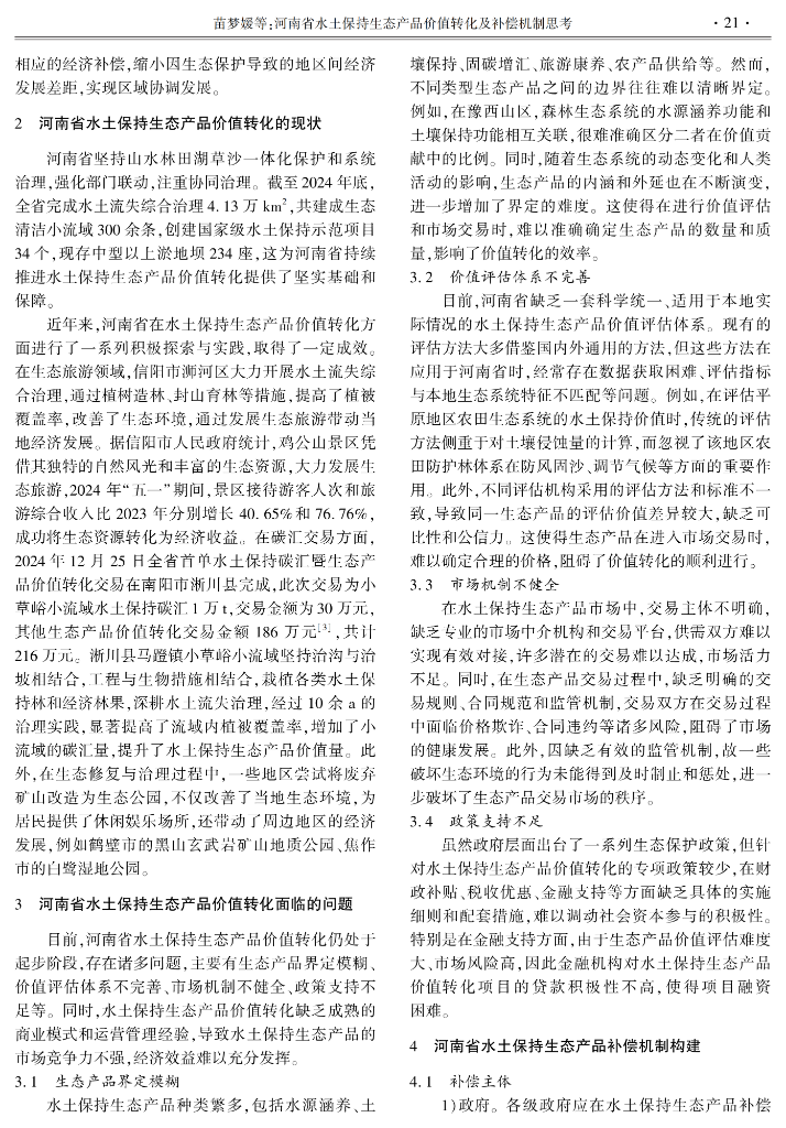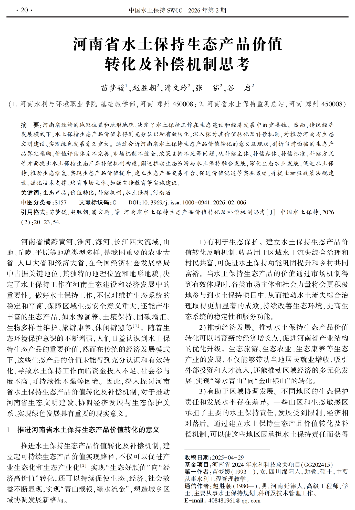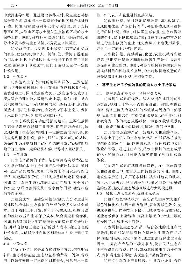 河南省水土保持生态产品价值转化及补偿机制思考