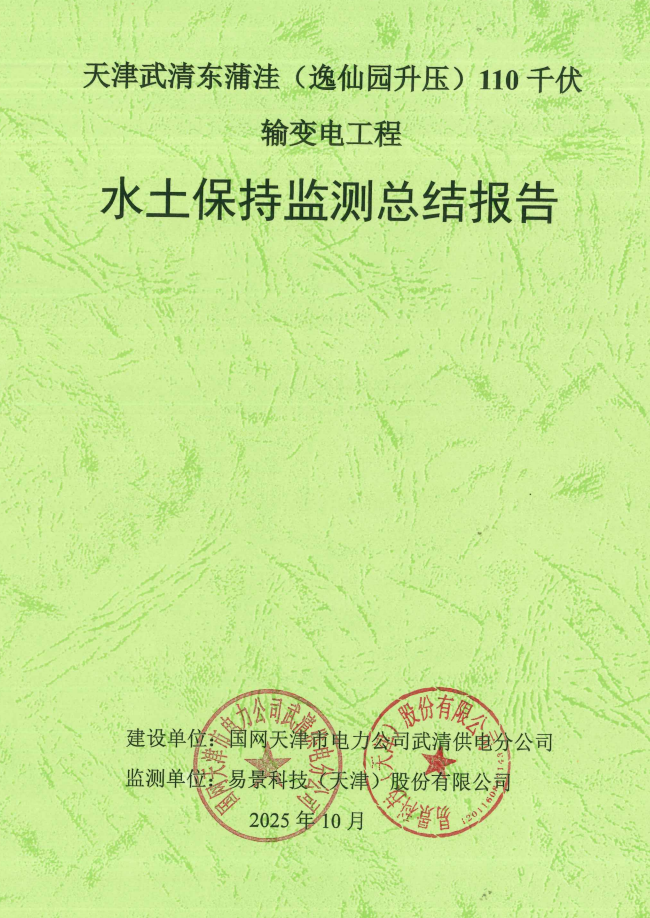 附件1:武清东蒲洼(逸仙园升压)110千伏输变电工程水土保持监测总结报告.pdf