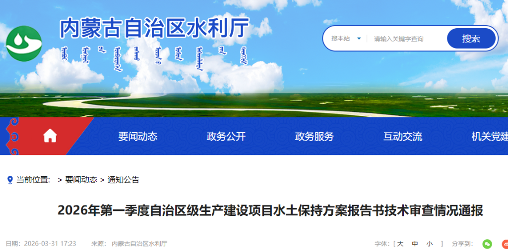内蒙古2026年第一季度自治区级生产建设项目水土保持方案报告书技术审查情况通报