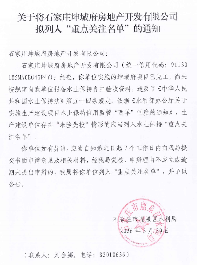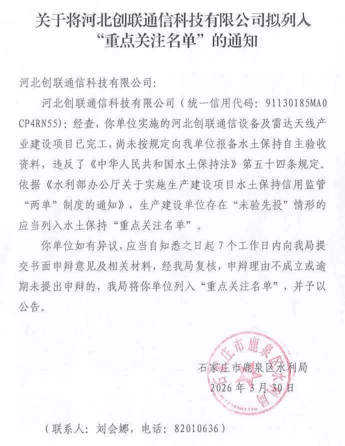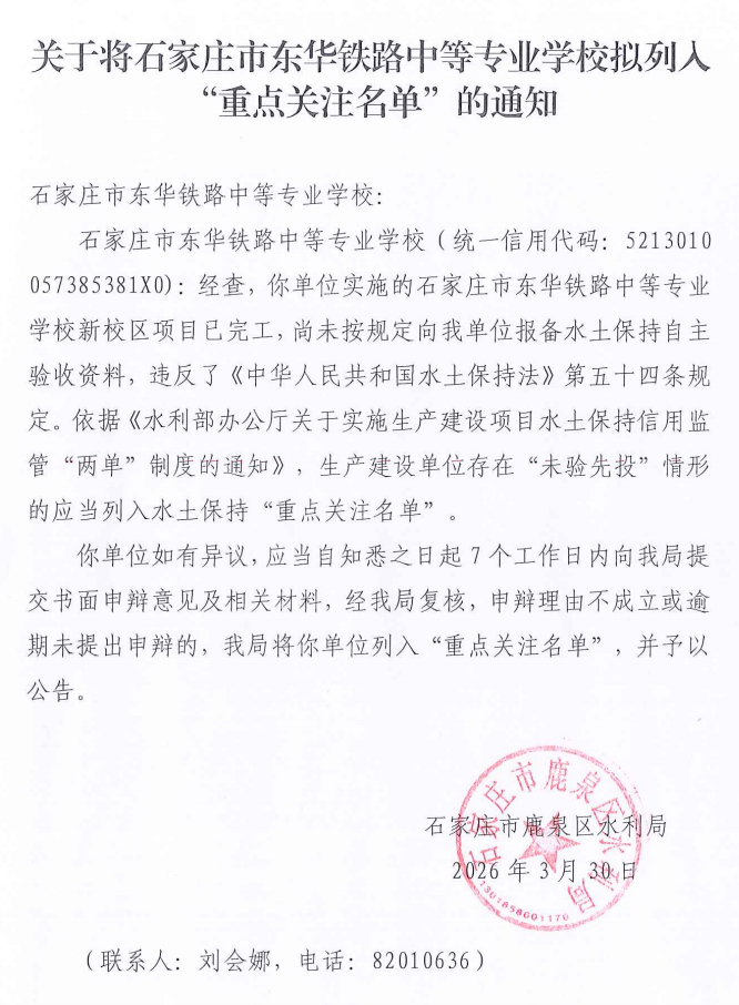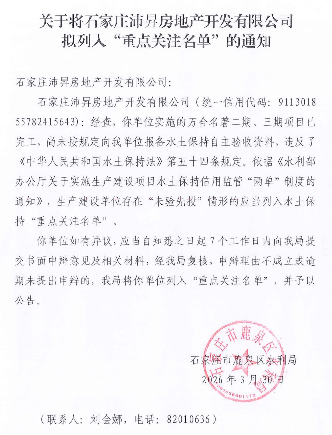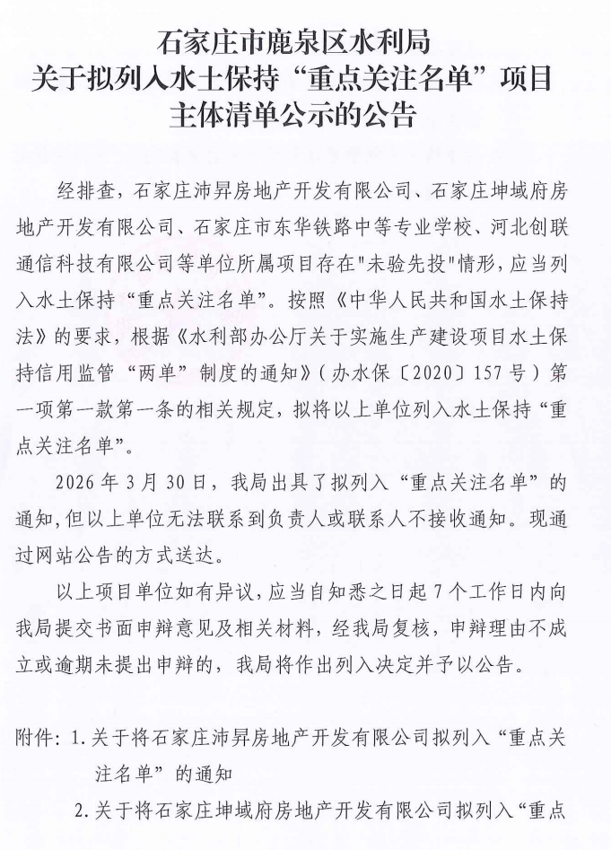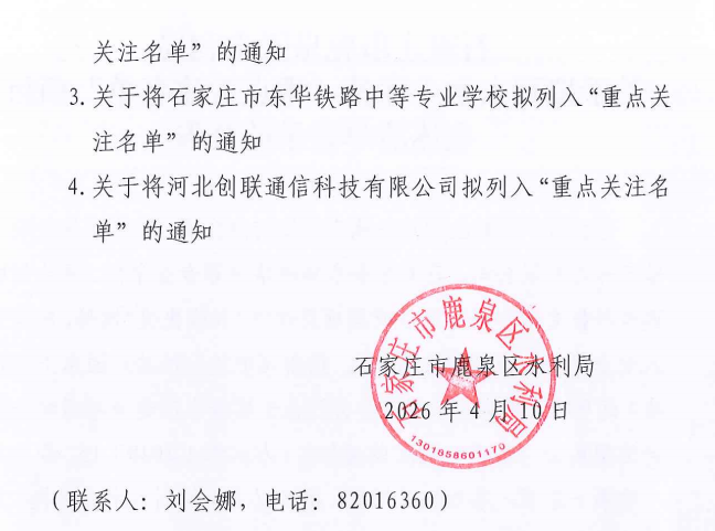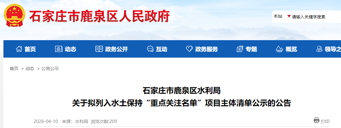 石家庄市鹿泉区水利局 关于拟列入水土保持“重点关注名单”项目主体清单公示的公告