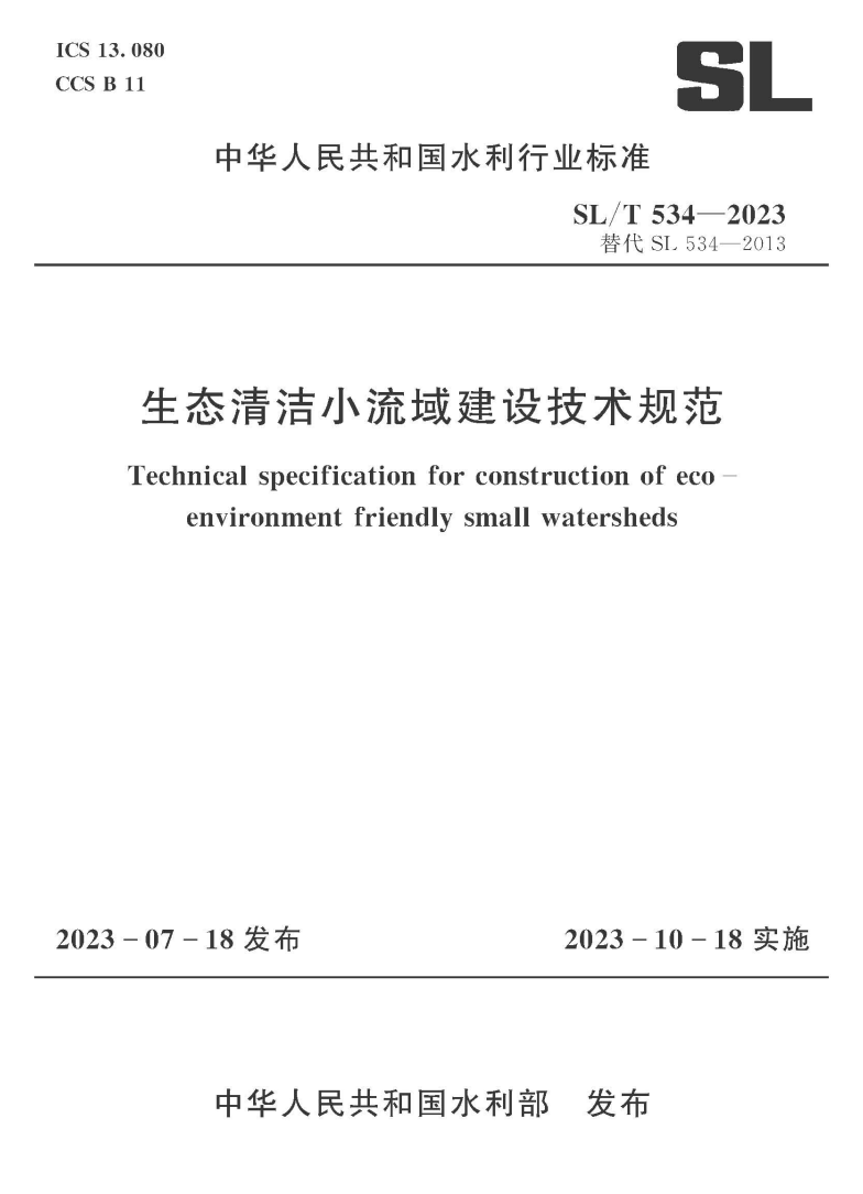 SL/T 534-2023 生态清洁小流域建设技术规范
