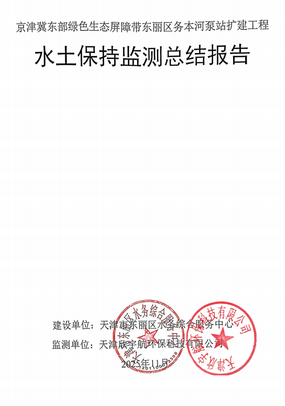 附件1:京津冀东部绿色生态屏障带东丽区务本河泵站扩建工程水土保持监测总结报告.pdf
