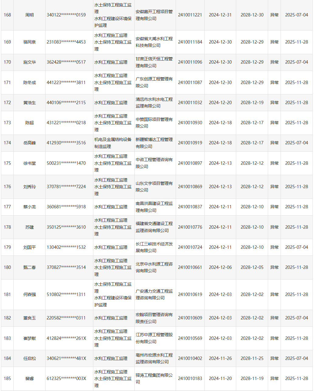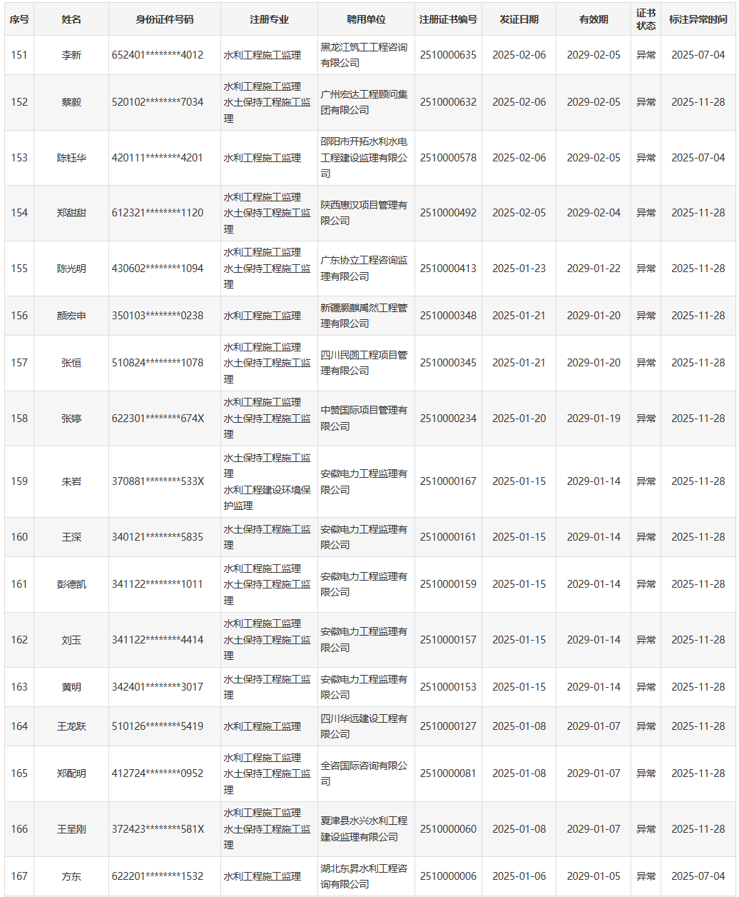 (三)对于聘用注册证书状态异常人员的水利工程建设监理单位,水利部将按照《水利部办公厅关于开展水利工程建设监理单位资质动态核查工作的通知》(办建设函〔2024〕1051号)要求进行重点核查,对专业技术人员数量的认定扣除注册证书状态异常人员。