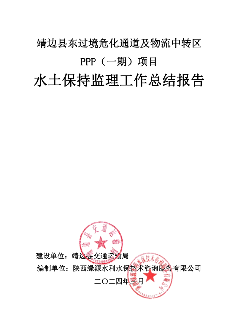附件1:靖边县东过境危化通道及物流中转区PPP(一期)项目水土保持监理工作总结报告.pdf