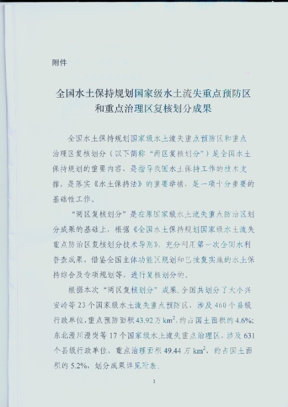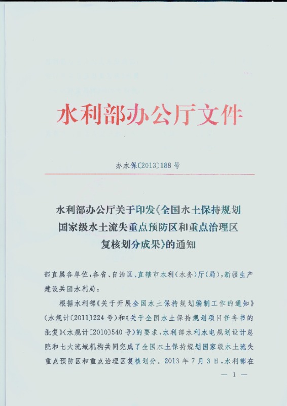 附件1:20130812水利部办公厅关于印发《全国水土保持规划国家级水土流失重点预防区和重点治理区复核划分成果》的通知(办水保【2013】188号).pdf