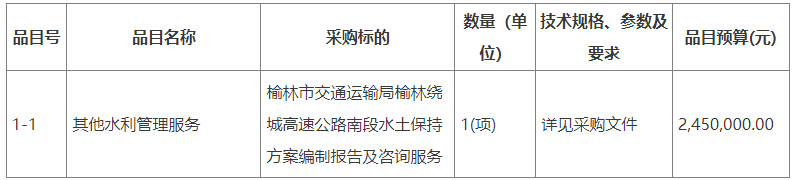 合同包1(榆林绕城高速公路南段水土保持方案编制报告及咨询服务):