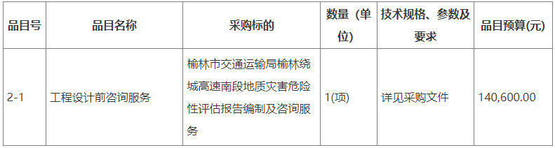 合同包2(榆林绕城高速公路南段地质灾害危险性评估报告编制及咨询服务):