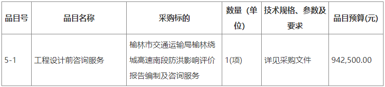 合同包5(榆林市交通运输局榆林绕城高速南段防洪影响评价报告编制及咨询服务):
