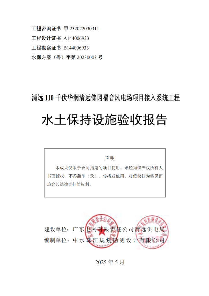 附件2:水土保持设施验收报告-清远110千伏华润清远佛冈福音风电场项目接入系统工程.pdf