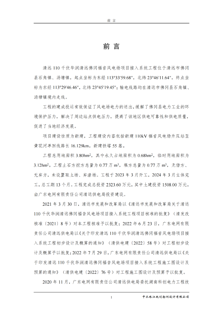 清远110千伏华润清远佛冈福音风电场项目接入系统工程